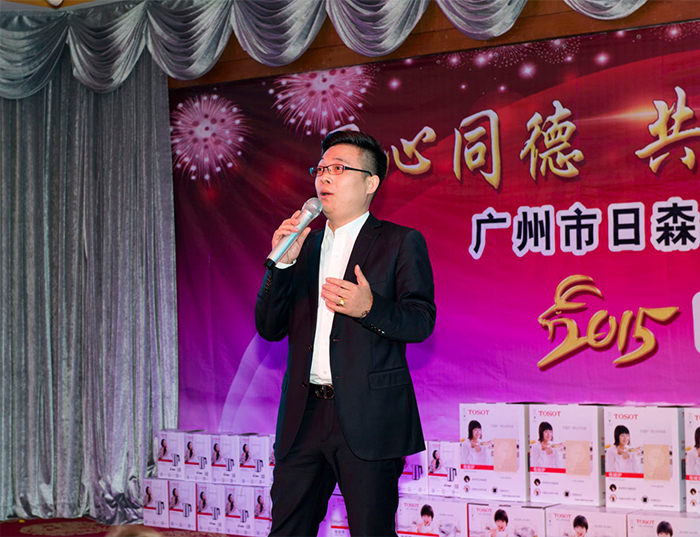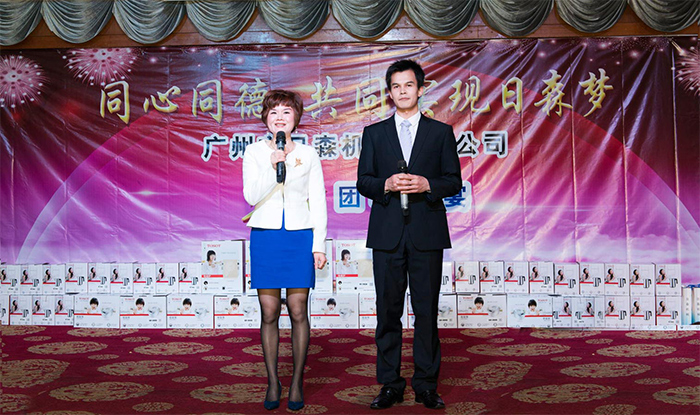 2015年2月5日,日森公司的团年晚宴在广州华金盾大酒店举行。本次年会的主题是“同心同德,共同实现日森梦”。公司220多名员工,130多名合作伙伴及股东、嘉宾欢聚一堂,共襄盛典!