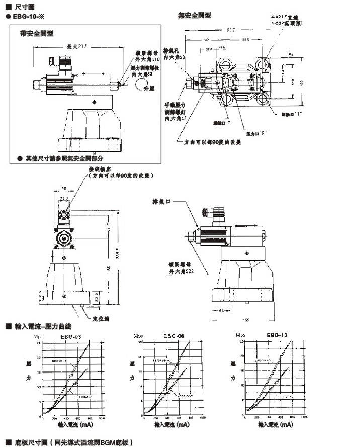 ●经特殊研发的低嗓音溢流阀作主阀,直动型比例溢流阀作导阀组合而成。能够根据输入电流的大小线性地调节压力。