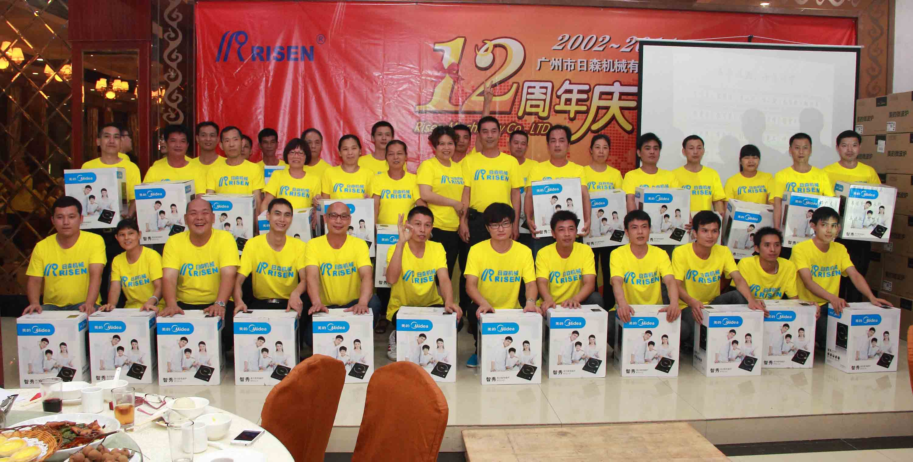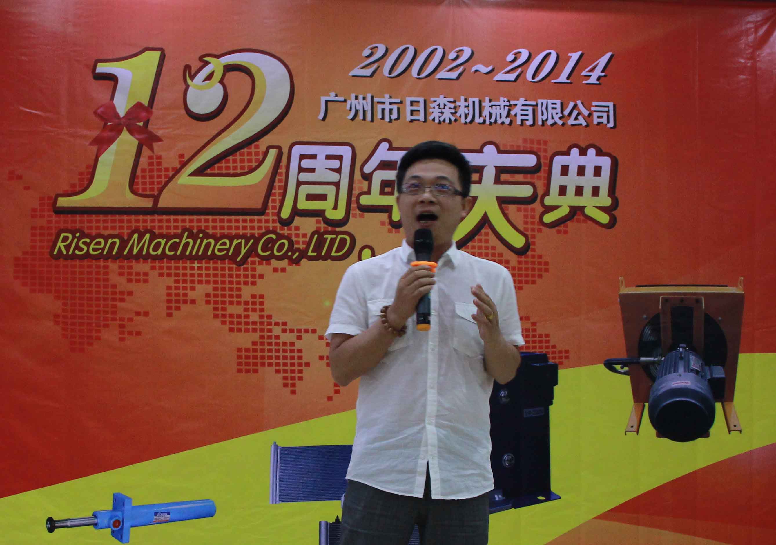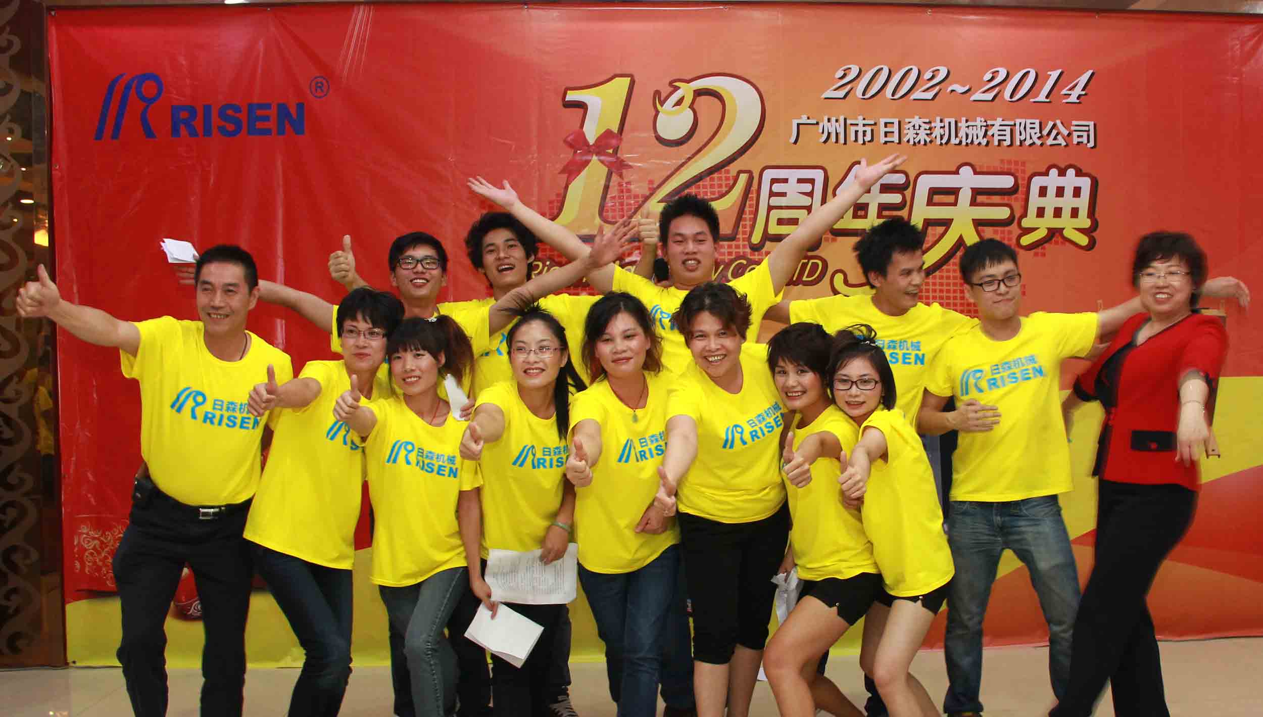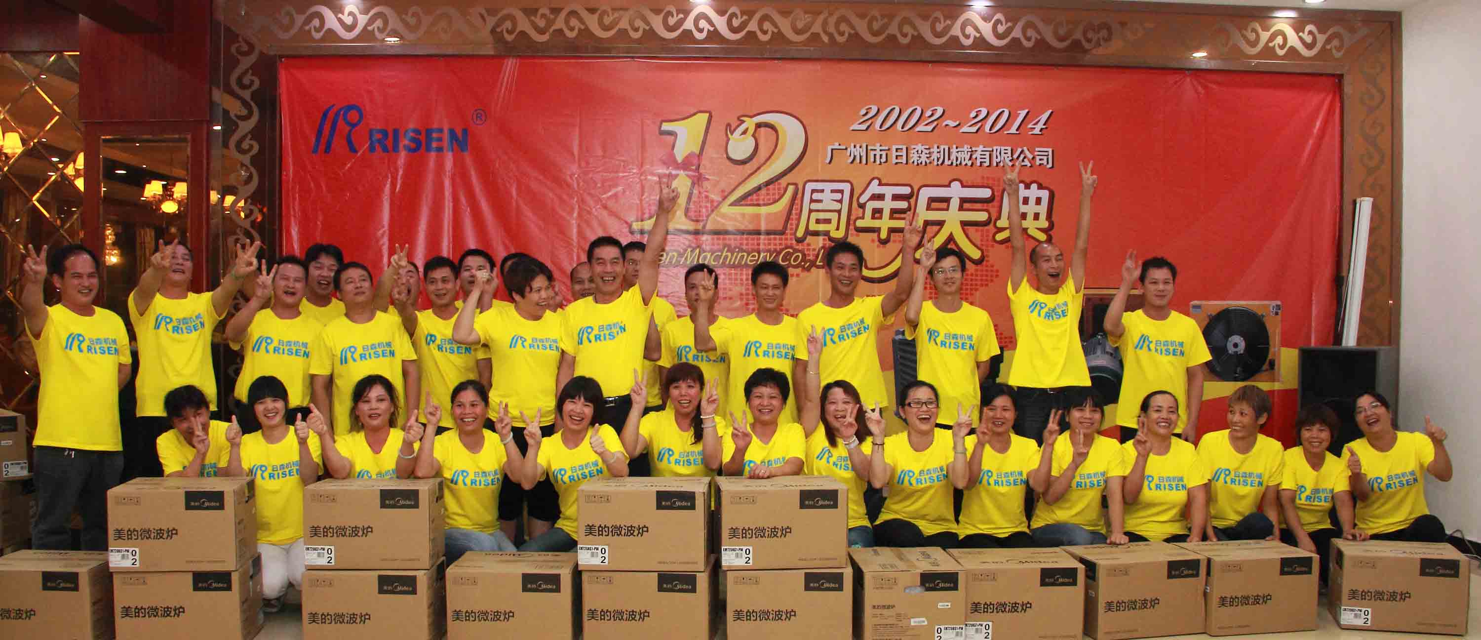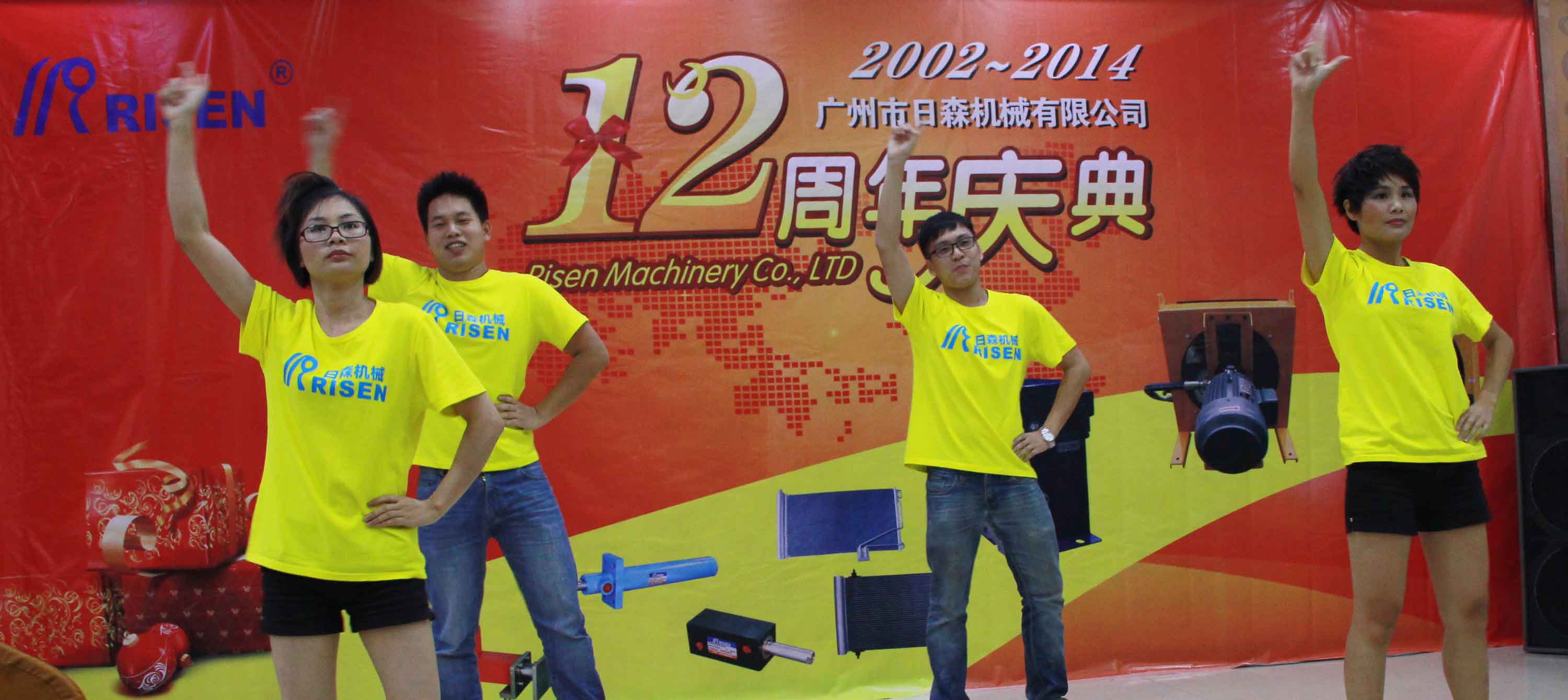 日森公司12周年庆典于2014年7月28日隆重举行!全体日森人欢聚一堂共同为“日森”庆生!庆典以《日森之路》PPT开始,接着是日森人自编自演的《工装秀》、《小苹果》舞蹈节目,以及嘉宾袁鹏飞的独唱《在那桃花盛开的地方》!