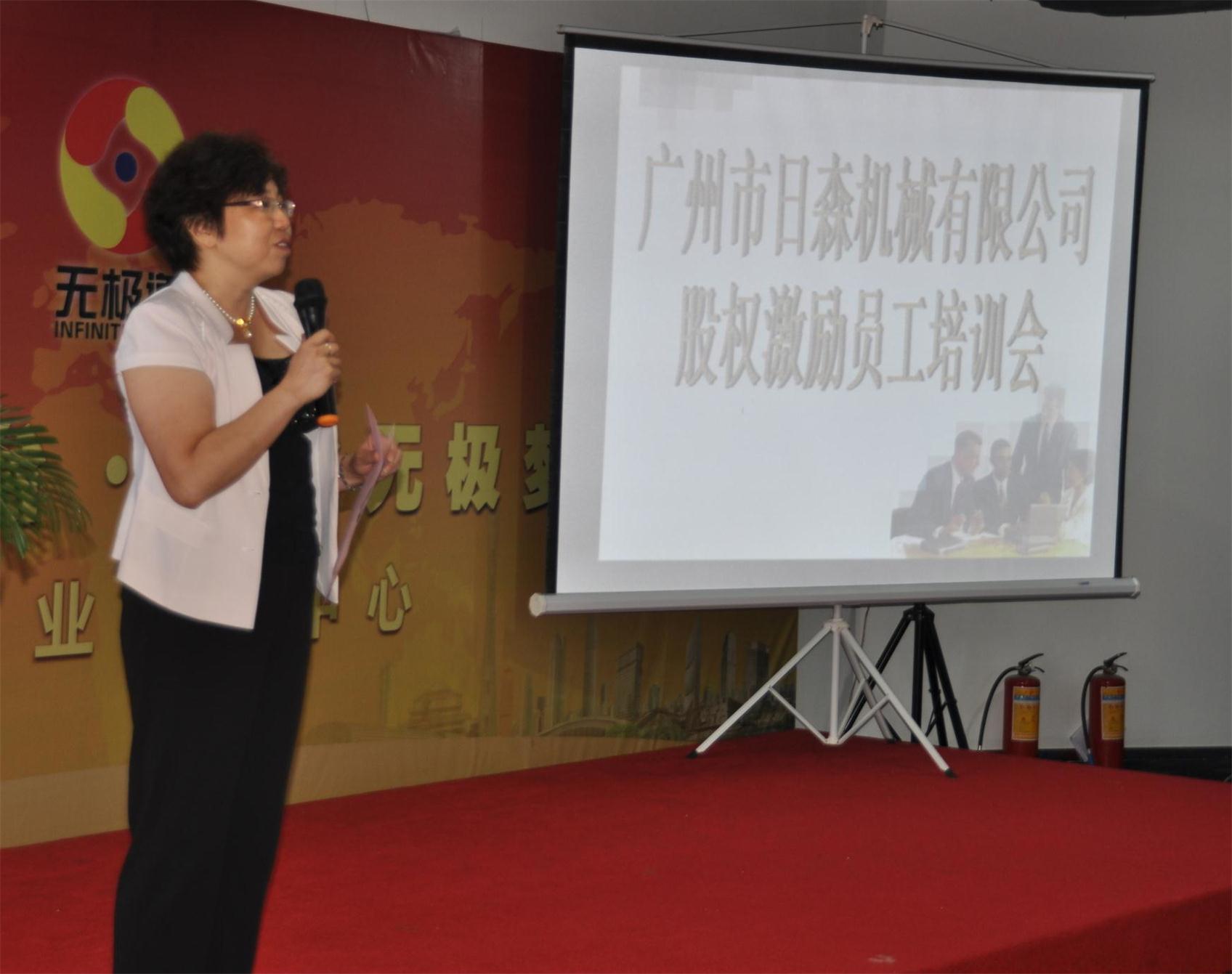 2014年8月30日,日森机械员工齐聚一堂,隆重举行股权激励员工培训会,并特邀中国上市公司市值管理研究中心华南总部总裁赵红梅女士、日森理财顾问熊涛女士、中国产业金融中心私人银行部总经理黄品超先生、广东骏森濠律师事务所李成万律师和潘炫燕律师等嘉宾出席,会议由日森机械总经理陈燕女士主持。