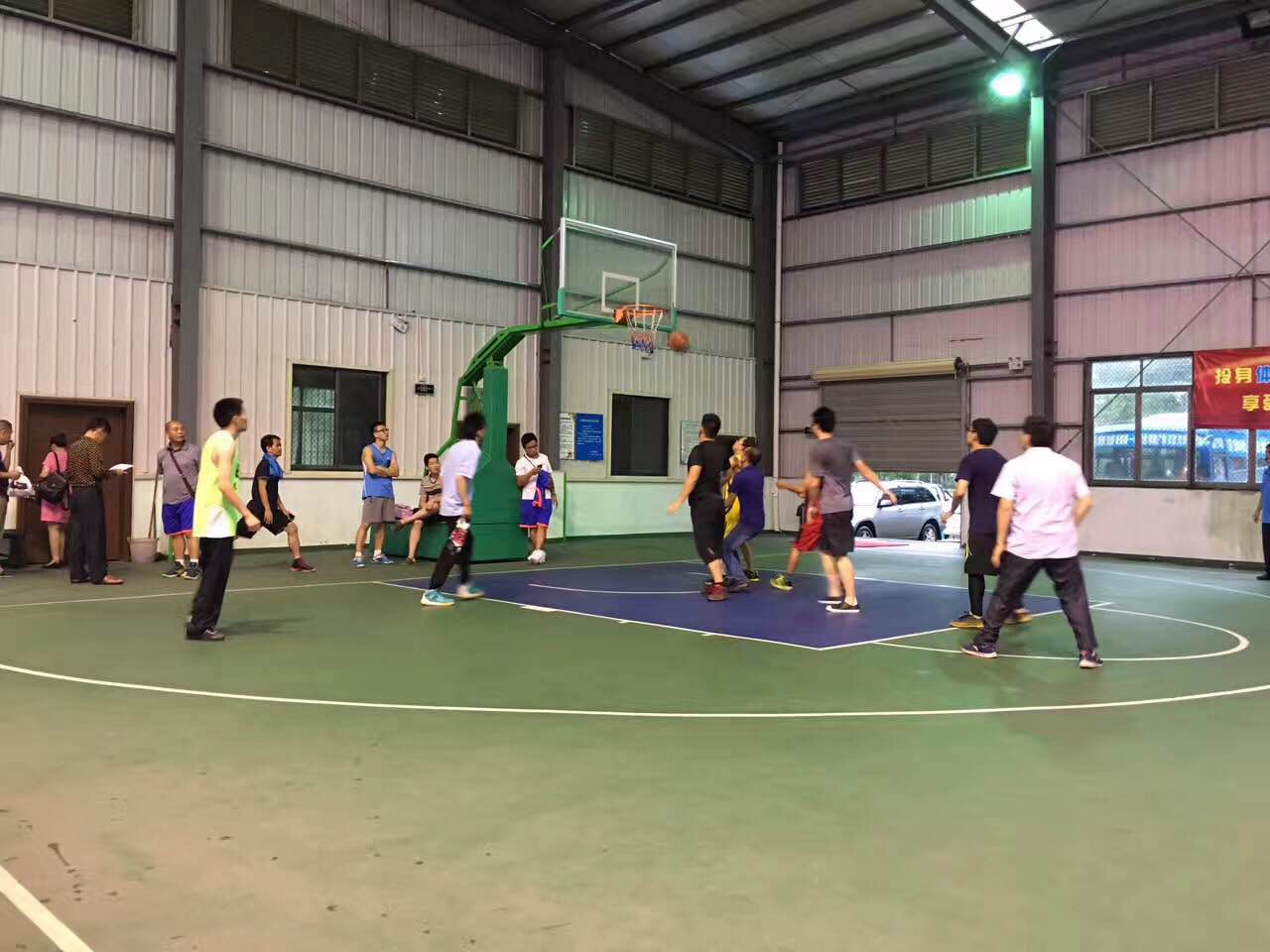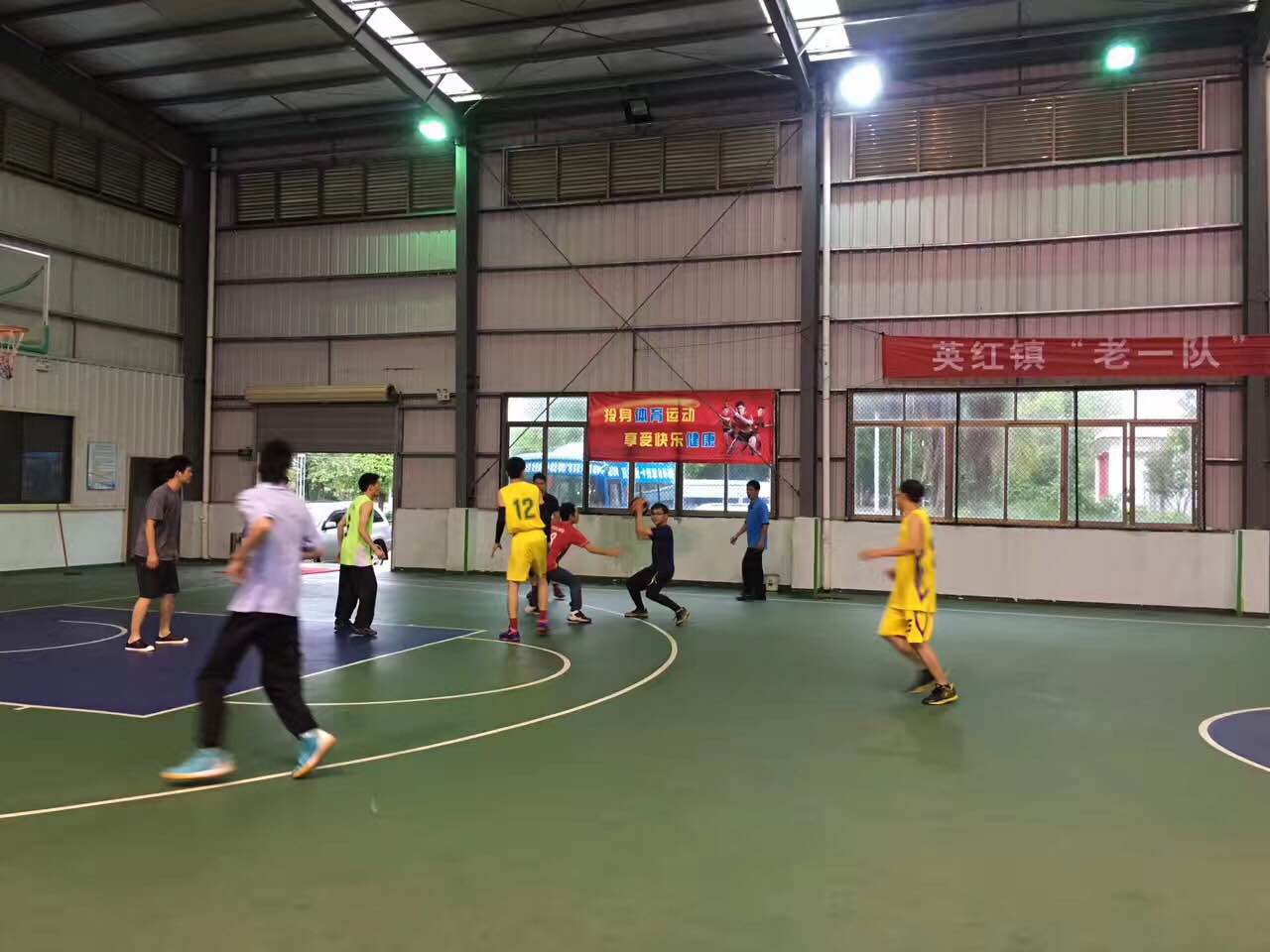 比赛中,双方篮球队员精神抖擞,体力充沛,奔跑积极,严密防守,沉着冷静应