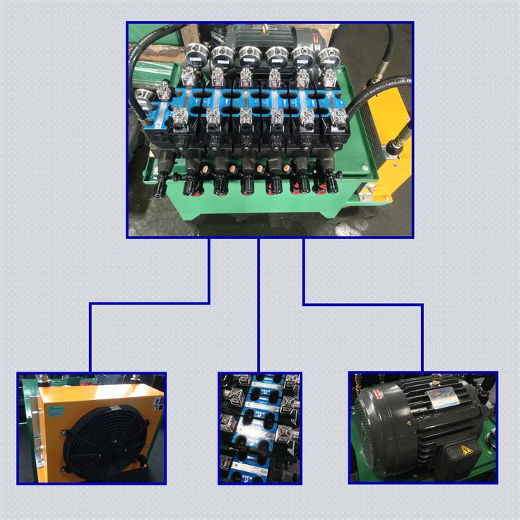 液压站是由泵装置、集成块或阀组合、液压油风冷却器、油箱组合而成。